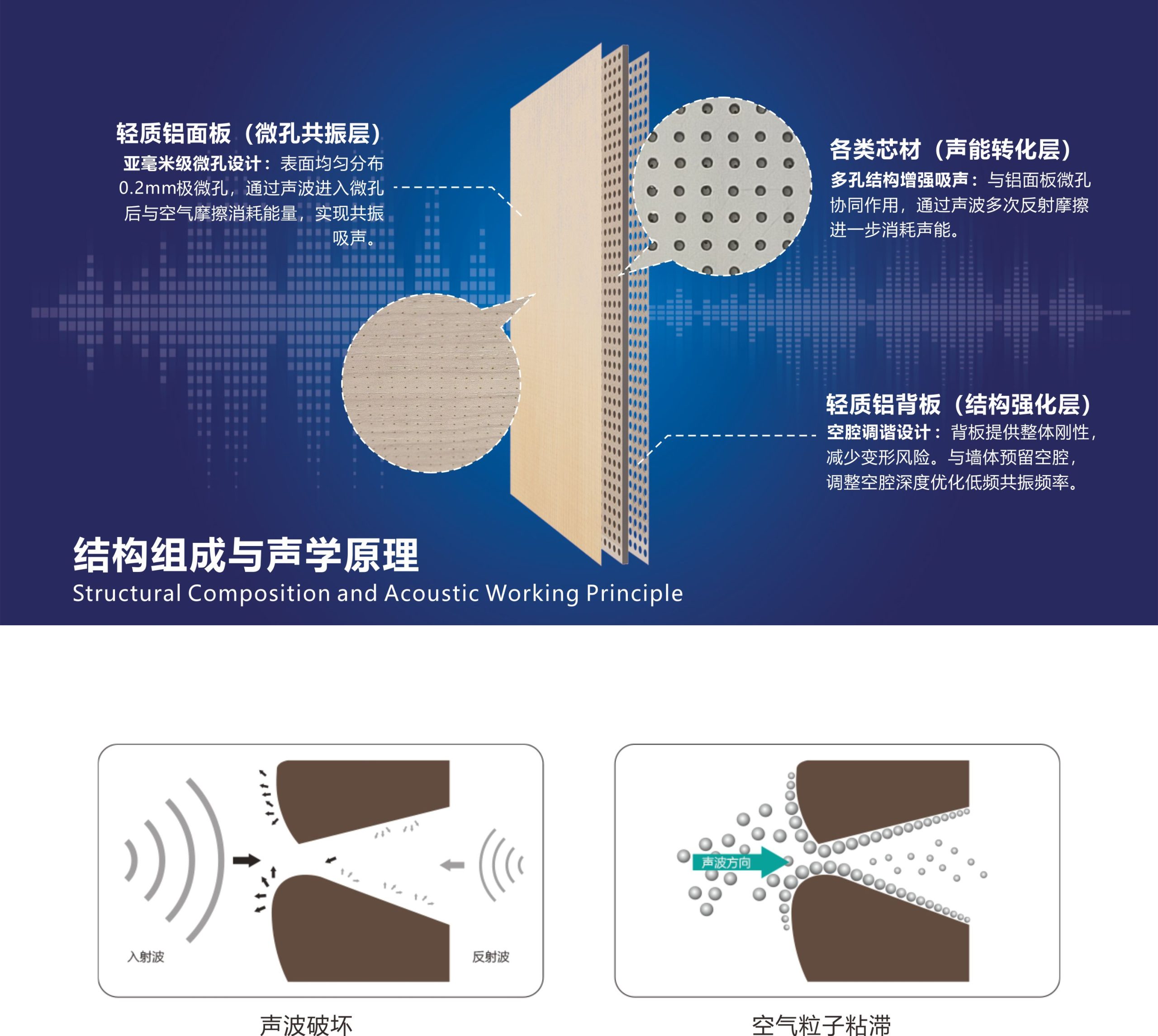 声能转化:声波进入微孔后,在背腔空气层中摩擦共振,将声能转化为热能消耗。