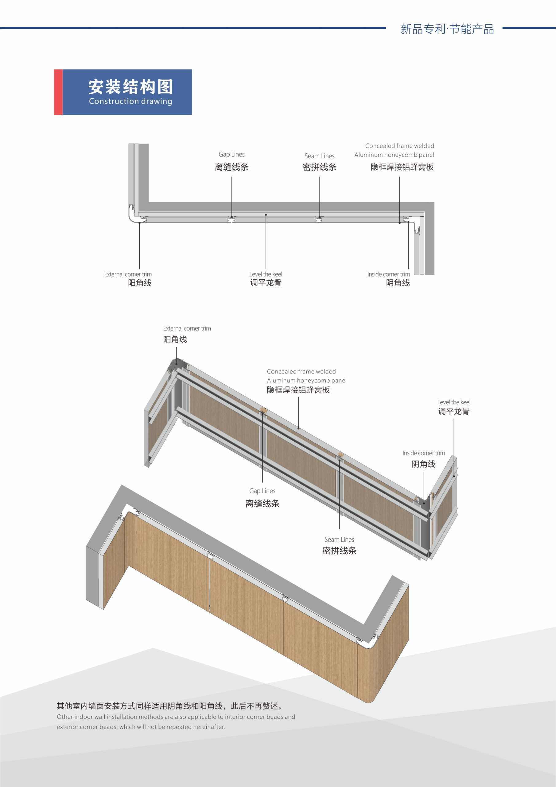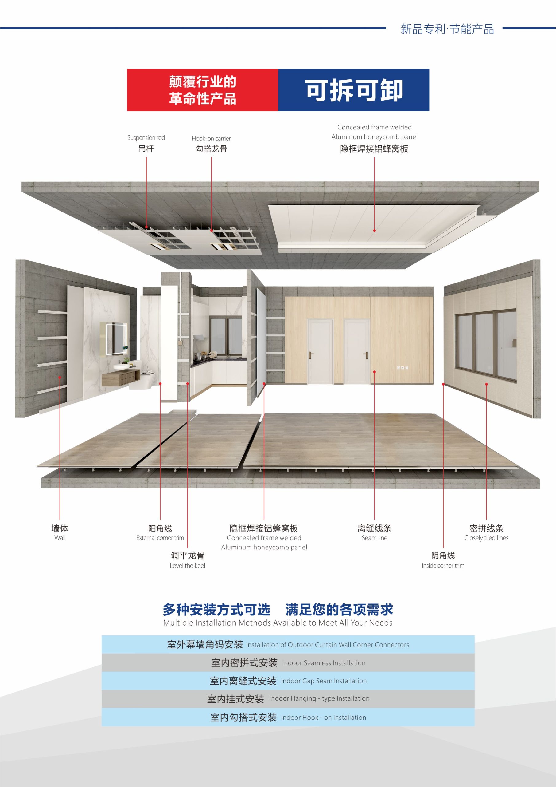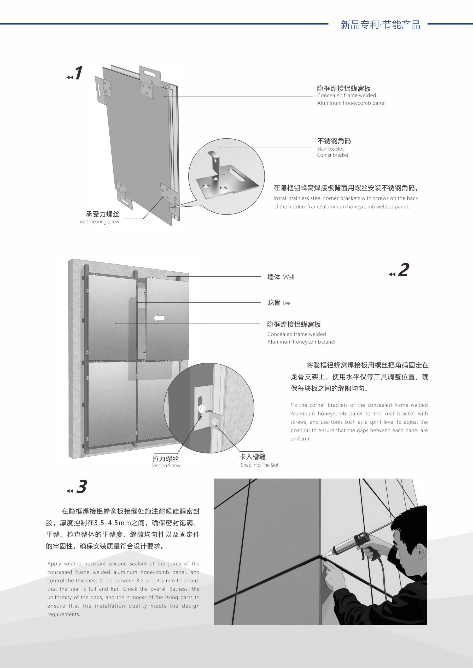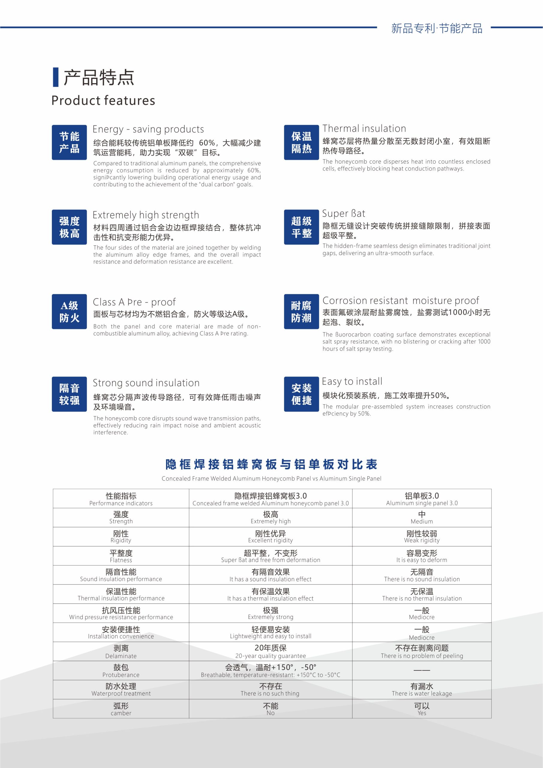 材料:铝面板 +铝蜂窝芯+ 铝合金边框 +铝背板
